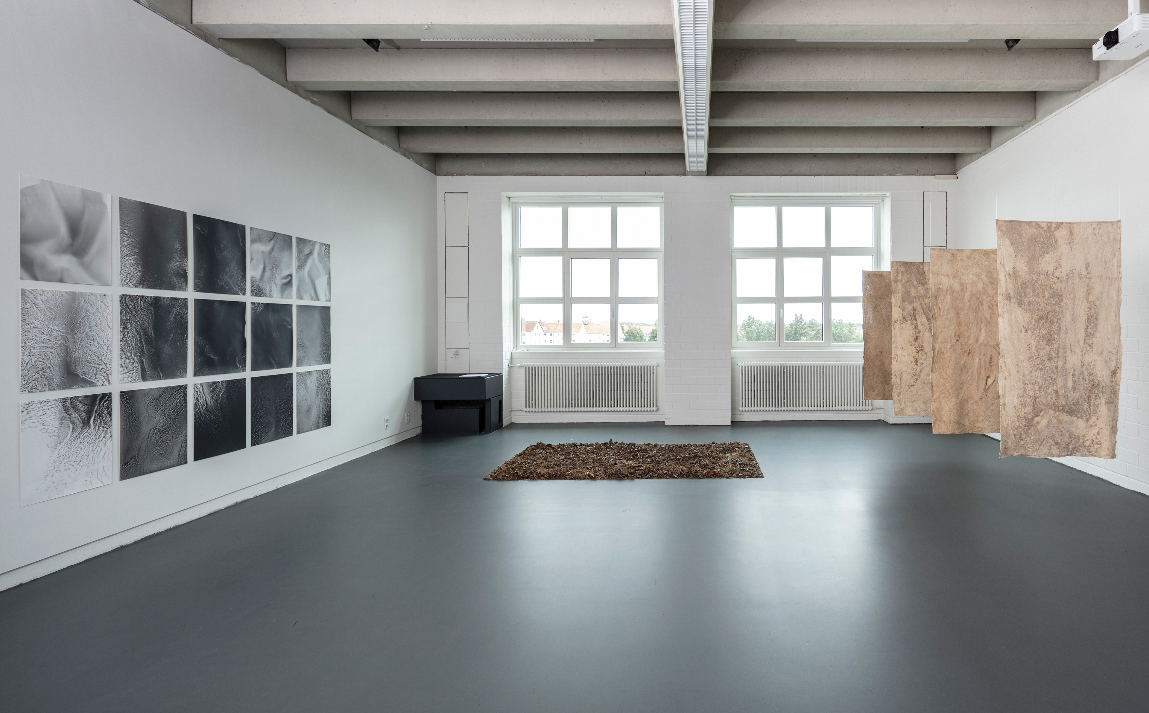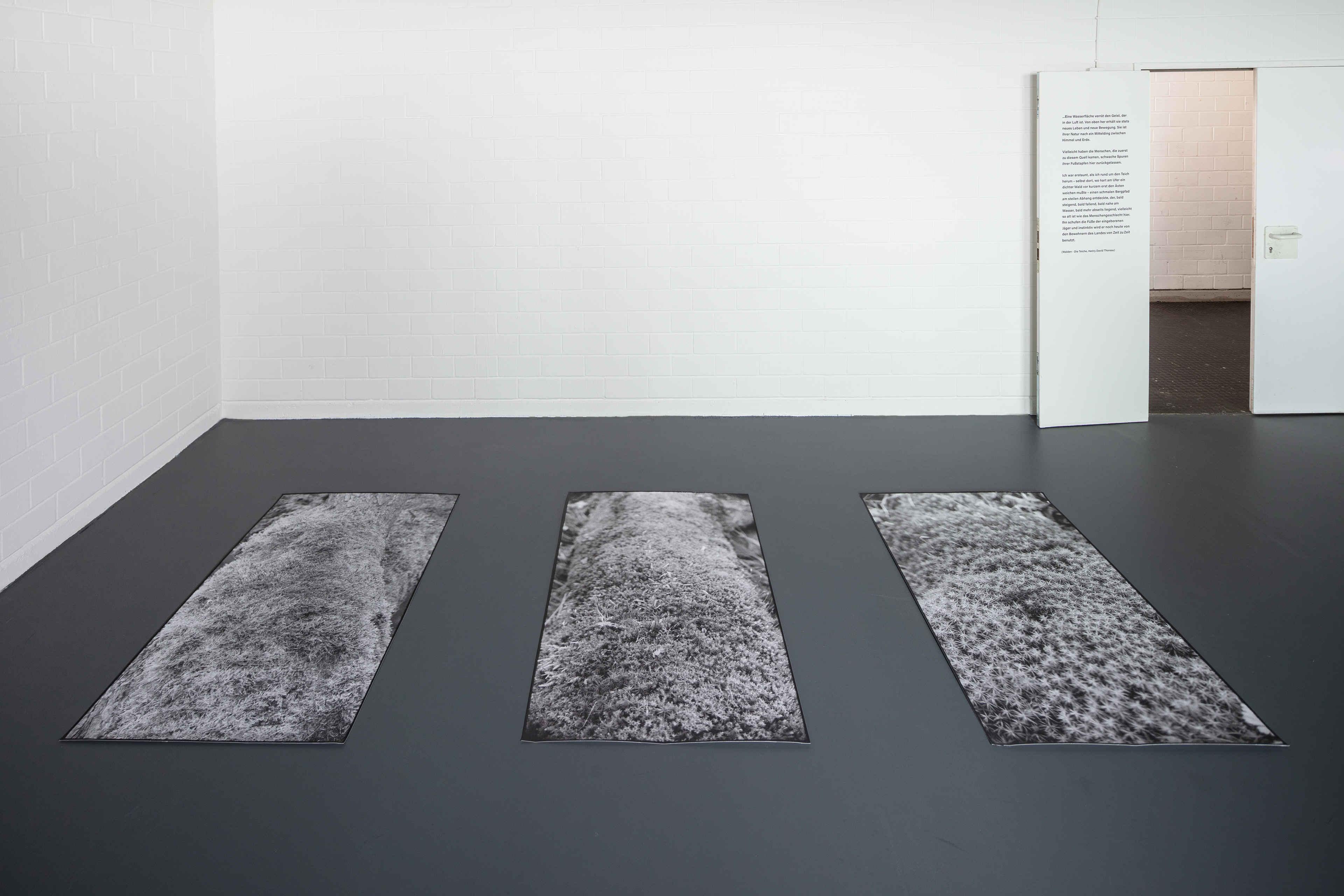 Ausstellungsansicht, Detail drei Fotografien Moos